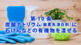 その理由は、重曹の水溶液のはpH8.2(2%、20度)、洗濯用石けんのpHは10前後だから、石けんのアルカリを弱めてしまいます。